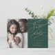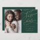 Esta fotografia romântica da caligrafia verde, para salvar o cartão de data é perfeita para um casamento simples. O clássico moderno design apresenta espirais de rico e turbilhões brancos com belíssima e elegante tipografia de folha de ouro de champanhe com letra falsa.