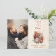 Anuncie seu próximo casamento de outono em estilo com nossa Foto Rust Terracotta Flowers Burnt Orange Fall Salvar a Data. Projetado para capturar o calor e a beleza da estação, este cartão salva a data serve como uma lembrança encantadora para você e seus entes queridos apreciarem. Apresentando uma ferrugem espantosa, terracota, e paleta de cor laranja queimada, adornada com delicados sotaques florais, ele captura perfeitamente a essência do esplendor do outono e convida seus convidados a compartilhar a alegria de sua história de amor. Combine a elegância do eterno com a comodidade moderna com nossos cartões salve a data fotográficos. Impresso em estoque de cartão de alta qualidade com acabamento macio, cada placa apresenta durabilidade e estilo. A opção de incluir uma foto apreciada de você e seu parceiro adiciona um toque pessoal para salvar o anúncio da data, fazer-o ainda mais memorável para seus convidados. Com seu design cativante e detalhes personalizáveis, nossas Flores de Terracotta Quedas Laranja Queimadas Salvem a Data é a maneira perfeita de lançar suas celebrações de casamento no outono. Faça com que você salve a data realmente seja seu, com opções personalizáveis que lhe permitem adicionar um toque pessoal a cada detalhe. Quer você escolha incluir seus nomes, data de casamento ou uma mensagem especial, nossas flores de terracota queimadas laranja salvam a data podem ser personalizadas para corresponder ao seu estilo e visão. Crie uma salva no anúncio da data que reflete sua história de amor e captura a beleza da estação em toda sua glória. Anuncie seu casamento de outono com estilo e elegância usando nossa Foto Rust Terracotta Flowers Burnt Orange Fall Salvar a Data. Apresentando o design do eterno e opções personalizáveis, defina o tom para sua celebração da forma mais memorável. Peça agora!