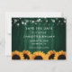 Foto do casamento russo verde e girassol salvam o cartão de data com girassóis e lanternas de cordas em um fundo de madeira. Design de cartão ideal para um país rústico verde, jardim, quintal ou festa de casamento de celeiro inspirado pelas flores de girassol.