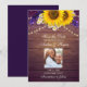Este casamento rústico, roxo e amarelo de girassol floral, salvo a data é perfeita para o seu dia especial. O design apresenta um buquê floral de girassóis, lavandas, margaridas e iretos cercados por luzes de cordas sobre um fundo de madeira rústica. Fontes elegantes e delicadas adoram a data. Este tema de design é perfeito para o seu jardim, rústico, elegante, vintage, país ou destino. Veja a coleção completa na nossa página para itens correspondentes que satisfazem todas as suas necessidades de suíte de casamento.