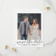 Use nossos cartões salve a data de fotos com uma borda branca para que seus convidados saibam bloquear sua data de casamento antecipadamente. Dica: se você precisar alterar o texto que está na fonte do script, você pode ir para a seção "Personalizar este Modelo" e clicar em "Clique para personalizar mais" na parte inferior. Você pode excluir qualquer uma das imagens de texto necessárias e adicionar seu próprio texto em seu lugar com o botão "Adicionar texto". Verifique nossa grande seleção de cartões salve a data de fotos, cartões postais e ímãs navegando em nossa coleção Imagem Salvar a Data!