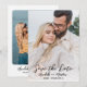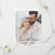 Cartão de Salvar a Data de Casamento Minimalista Simples. Este design atemporal apresenta fotos na frente e no verso, cada uma com bordas arredondadas para um toque suave e elegante. A foto da frente ocupa todo o espaço, com um efeito de gradiente transparente branco na parte inferior que se funde perfeitamente na imagem. Essa sobreposição sutil torna o texto, que inclui "Salvar a Data" em caligrafia elegante manuscrita, juntamente com os nomes dos noivos, data do casamento e local, mais fácil de ler. Você pode remover o efeito de gradiente se preferir uma aparência mais limpa e inalterada.