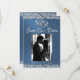 Esta design romântica apresenta um elegante fundo azul com bordas brilhantes, espaço reservado para a foto do casal, e dois corações prateados interligados com a data do evento em um roteiro elegante na frente. O verso tem um marcador de posição monograma, mais informações e lugar para o seu site no verso. Também disponível com diferentes planos coloridos para as cores do tema do casamento. (O brilho é simulado no trabalho de arte). Concebido para coordenar a Coleção de Casamentos "Dois Tornar-se-ão Um - Corações, Doves & Glitter". Para alterar os detalhes, clique em "Personalizar". Substitua a foto pela sua. Para mover o texto ou alterar o tamanho, a fonte ou a cor do texto, clique em "Clique para personalizar mais"
