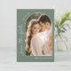 Enche os convidados do casamento animados para o dia especial, com este moderno sábio verde, duas fotos, salve o cartão. Apresentando um design de arco com vibrações boho, este cartão é perfeito para mostrar duas fotos incríveis de você e seu parceiro e é garantido que seus convidados ficam animados pelo grande dia. Então, faça uma declaração com esse único cartão de data e deixe o planejamento do casamento começar!