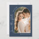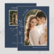 Faça seus convidados de casamento animados para seu dia especial com este marinho azul moderno, duas fotos salvem o cartão de data. Apresentando um design de arco com vibrações boho, este cartão é perfeito para mostrar duas fotos incríveis de você e seu parceiro e é garantido que seus convidados ficam animados pelo grande dia. Então, faça uma declaração com esse único cartão de data e deixe o planejamento do casamento começar!