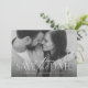 Este simples, porém elegante cartão de "salve a data" de foto é a maneira perfeita de anunciar seu noivado e casamento próximo para amigos e familiares. A frente deste "salve a data" horizontal apresenta um tratamento de tipo moderno em branco na parte inferior de uma única foto. O verso é uma cor greige elegante com uma segunda foto, juntamente com espaço para uma mensagem personalizada, assinatura e um código QR para o site do seu casamento. Este "salve a data" original de Lea Delaveris Design faz parte de uma coleção onde você pode encontrar mais cores e estilos. Ele também está disponível como um download digital de "salve a data".