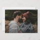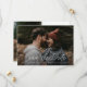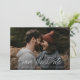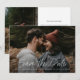 Este anúncio de data de casamento moderno, simples e elegante apresenta data de casamento em letra branca manuscrita, detalhes de texto personalizáveis mínimos e foto na frente. O verso tem espaço para uma foto adicional e mensagem pessoal. Você pode atualizar o texto de exemplo com seus detalhes ou excluir qualquer elemento indesejado. Clique no botão de edição para personalizar este design de acordo com as suas necessidades.
