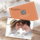 Faça uma impressão duradoura com nossos Cartões de Casamento Salva a Data, projetados para anunciar seu dia especial de uma forma simples e elegante. Apresentando uma bela foto do casal, essas placas combinam um roteiro de caligrafia e uma tipografia de eterno para um design clássico, clássico e sofisticado. O layout minimalista mantém o foco no seu amor, com o toque certo do estilo para refletir o significado de sua próxima celebração. Perfeito para primavera, verão ou casamentos outono, essas cartas incluem um conveniente código QR que direciona seus convidados para o site do seu casamento para mais detalhes, fazer mais fácil do que nunca para eles ficarem informados. Quer você esteja compartilhando seu anúncio de noivado ou simplesmente deixando que os entes queridos saibam salvar a data, essas cartas oferecem um toque moderno e elegante que dará o tom para o seu grande dia.