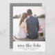 Casamento simples e chic salve o cartão de data apresenta uma bonito cinza macia e impressão branca com tipografia de pincel. Simplesmente adicione seus nomes e sua foto favorita para tornar este design clássico seu.