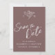 Convite simples de casamento com desenho botânico de outono em marrom e branco com sua própria foto no verso. Personalize este cartão de save the date de casamento com seus próprios nomes e data e a foto de sua escolha no verso. Desenho original e único feito à mão por Sarah Trett apenas para www.mylittleedenweddings.com