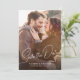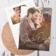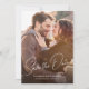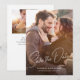 Anuncie sua próxima data de casamento com esta simples salvação da data com o elegante roteiro de manuscrito. O design oferece duas fotos: uma imagem vertical na frente e uma pequena imagem horizontal na parte traseira. O backside oferece texto personalizado para mais detalhes do casamento.