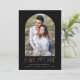 Anuncie sua data de casamento em estilo com nossa foto moderna, salve a data. A simples gravação da placa de data apresenta o dentro de foto do seu noivado de um quadro de arco preto. "Salvar a Data" é exibido em fontes brancas modernas de script e serif. Personalize a frente da data de salvamento adicionando seus nomes, data de casamento e local do casamento. A placa se reverte para exibir um padrão de faixa preto e branco.