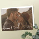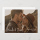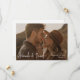 Este simples casamento de fotos quentes, salve o cartão de data, tem um design quente e minimalista. A frente apresenta seus nomes, data e local do casamento. Este texto é branco e seus nomes são destacados com uma fonte viva e caprichosa de escrita manual que dá um senso de calor e familiaridade a esse olhar moderno minimalista. Escolhemos os cantos nítidos como a forma padrão, mas os cantos arredondados também funcionam maravilhosamente com este design, então tente ambos os modos de edição e veja quais são os seus! No verso, definimos o plano de fundo como transparente para permitir que a cor do papel sirva simplesmente como a cor base. Você pode escolher uma cor para o plano de fundo, se preferir. Você também pode editar o texto de acordo com as suas necessidades. Talvez você queira excluir um campo de texto que não precisa ou alterar a cor ou a fonte de algum texto. Escolhemos um tom cinza escuro com elementos de preto para ele para o texto no verso, mas você pode facilmente mudar isso para se adequar ao seu estilo. Use as ferramentas intuitivas de design, sua foto favorita e sua inspiração para fazer com que este casamento de na moda salve a carta de data chata exclusivamente sua!