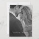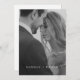 Este simples casamento com fotos de chic salve o cartão de data e tem uma design minimalista moderna e impressionante. A forma padrão são cantos nítidos padrão, mas você pode mudar isso para cantos arredondados, que também funcionam maravilhosamente com este design. A frente apresenta os seus primeiros nomes em branco em letras maiúsculas com um símbolo '+' entre eles. Nossa foto de amostra é uma foto colorida, mas usamos o filtro do zazzle para mudá-lo para preto e branco, então sua foto colorida também aparecerá como preto e branco quando você editar esta modelo. Mas talvez você prefira manter a cor desativando os filtros preto e branco, então tente ambos os modos de edição e veja o que atinge seu rico! No verso, definimos o fundo como transparente, de modo que a cor do papel servirá como tom base. Você pode escolher uma cor para o plano de fundo, se preferir. Você também pode editar o texto de acordo com as suas necessidades. Talvez você queira excluir um campo de texto que não precisa ou alterá-lo para mostrar uma mensagem diferente, ou alterar a cor, o tamanho ou a fonte de algum texto. Você poderia mudar a redação para se adequar ao seu estilo, por exemplo, mudando "estamos se casando" para se tornar casando." Demos a esta elegante e subestimada design de panache com 'Salve a Data' em uma fonte viva e quente. Isso é preto e a cor desse elemento do design não pode ser alterada, como é uma imagem. Mas o outro texto no verso, que é um tom de cinza por padrão, é totalmente editável. Use as ferramentas intuitivas de design, sua foto favorita e sua inspiração para fazer com que este casamento de na moda salve a carta de data chata exclusivamente sua!