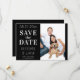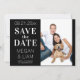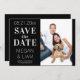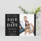 Este simples e moderno casamento preto e branco salva o convite de data e mostra um elegante roteiro branco em um fundo preto com sua própria foto. O texto pode ser personalizado editando as caixas de texto. A cor no verso do convite pode ser alterada no editor. Projetado para você pelo Evco Studio © em www.zazzle.com/store/evcostudio #casamento #savethedate #convite #convida #wedinginspiração #b&w #blackandwhite #blackandwhitecasamento #simples #elegante #na moda #moderno #design #popular #topsellers #topsellers #topseller #personalizado #trending #wintercasamento #summerncasamento #autumncasamento #noivado #personalização #personalização #destino #formal #clássico