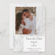 Este Anúncio de Save the Date de Foto Simples Marmorizada Branca vem com um design de texto simples, em um layout moderno e simples contra um fundo marmorizado esperando sua foto e detalhes do casamento para personalizar. Cores adicionais disponíveis com este design.