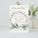 Na moda de casamento no inverno elegante moderno e russo salva a modelo num simples fundo branco com uma coroa de toalhas de pínus, galhos secos e salpicos de aquarela com texto personalizado do lado frontal e sua foto (vertical orientada para retrato) no verso. Preencha suas informações nos pontos, Você pode optar por personalizá-las mudando ainda mais as fontes e as cores das letras. — O cartão é adequado para elegantes e modernos casamentos de inverno rústico, florestas, verde ou natal. — Se precisar de assistência, por favor, entre em contato comigo!