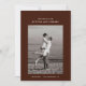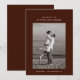 O cartão de save-the-date apresenta uma única foto centralizada do casal. Acima da foto, os nomes deles são exibidos em uma fonte limpa e moderna. Abaixo, a data e o local do casamento são escritos de forma organizada. O design é minimalista com muito espaço em branco, focando na simplicidade e elegância.