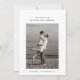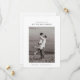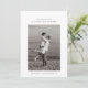 O cartão de save-the-date apresenta uma única foto centralizada do casal. Acima da foto, os nomes deles são exibidos em uma fonte limpa e moderna. Abaixo, a data e o local do casamento são escritos de forma organizada. O design é minimalista com muito espaço em branco, focando na simplicidade e elegância.