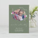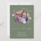 O mesmo amor menor caligrafia manuscrita. Salve a data - página verde Moss com moldura de foto de derrame de pincel de tinta - cercada por buquê de flores lilás e crocus brancos cor-de-rosa e verde-verde. Está finalmente a acontecer, avise aos seus convidados que o casamento ainda está ligado e mantenha a sua data especial aberta.