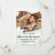 Deixe sua foto do casal feliz aparecer em uma abertura rasgada em um fundo verde e branco. Personalize-o com as suas informações de casamento.
