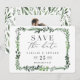 cartão de salvar a data com fotografia aquarela frondosa. Com belas folhas de aquarela e tipografia moderna e ousada, este convite para salvar a data está na tendência certa e é perfeito para qualquer estação. Parte de uma suíte de casamento