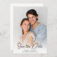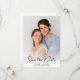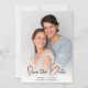 Anuncie seu grande dia com estilo com este cartão de Save the Date de Fotografia com Caligrafia Moderna. Com a sua foto personalizada na frente, este design destaca a sua história de amor com uma escrita sofisticada e um layout limpo e minimalista. A caligrafia moderna adiciona um toque romântico e atemporal - perfeito para definir o tom para a celebração do seu casamento. Totalmente personalizável com seus nomes, data e local, este cartão é uma bela lembrança que seus convidados irão guardar.