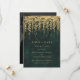 Uma ilustração de galhos de árvore com folhagem verde exuberante e selvagem e folhagem pendente, sobreposta digitalmente com dourado, sobre um fundo esmeralda brilhante, decora este convite de save the date de casamento de primavera verão outono ou inverno com tema de floresta encantada. Um save the date elegante e moderno para um casamento de conto de fadas. Perfeito para noivas que amam o cenário de floresta de conto de fadas, o tema de floresta de fadas ou jardim de fadas e esmeralda e dourado.