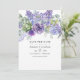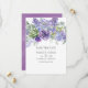 Convite de casamento moderno com folhas de eucalipto e plantas suculentas misturadas com flores em tons de lilás pastel, roxo e violeta. Ideal para qualquer tema ou casamento de jardim.