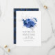 Convite de cerimônia de casamento floral em aquarela vintage com design moderno em azul royal e prata para ser personalizado rápida e facilmente de acordo com as suas especificações. Ideal para qualquer tema ou casamento no jardim.