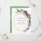 Convite de casamento de suculentas da moda com moldura geométrica dourada e lavagem de aquarela verde sage reversa. Ideal para qualquer tema ou casamento no jardim.