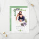 Cartões de save the date de casamento com suculentas modernas com moldura geométrica dourada e verso com lavagem de aquarela verde-sage.