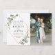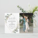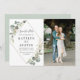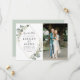 quadro geométrico aquarela pintada manualmente com verde de folhagem de eucalipto e fotografia do casal. Os detalhes de cor e texto podem ser personalizados.