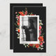 Monograma de casamento botânico com folhagens e flores silvestres, incluindo papoulas e margaridas com fundo cinza escuro. Personalize com sua foto e texto.
