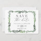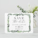 cartão de salvar a data com fotografia em aquarela com folhas. Com belas folhas em aquarela e tipografia moderna e ousada, este convite para salvar a data está na moda e é perfeito para qualquer estação. Parte de uma suíte de casamento