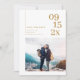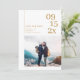 Design de tipografia moderna minimalista, com foto de casal e data de casamento ousada em cores douradas editáveis, chic e simples. cartões salve a data de excelente para casamento moderno e outros eventos. Selecione "Clique para personalizar mais" na seção "Personalizar este modelo" para ajustar a posição da sua foto.