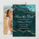 Cartão de Anúncio de Noivado com Geodo de Ágata em Turquesa e Dourado em Aquarela Moderna e Elegante - Parte de Trás da Foto