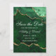 Cartão de Save The Date de Geodo de Ágata em Mármore Verde Esmeralda e Dourado com Pintura em Aquarela Moderna e Elegante - Parte de Trás da Foto
