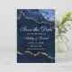 Cartão de Anúncio de Noivado Elegante Moderno com Ágata Geodo Mármore Azul e Dourado em Aquarela - Foto no Verso