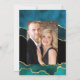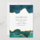 Convite de casamento com água-forte azul e folha de ouro falso personalizável para os detalhes do seu evento.