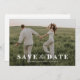 Cartões elegantes de aviso de casamento, apresentando uma foto impressa deslumbrante, envolta em uma sobreposição empoeirada vintage. A sofisticação atemporal de uma fonte serifada e script escreve 'salve a data', seus nomes e a data. O verso contém outra foto personalizada e os detalhes do seu site.