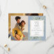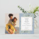 Com delicadas folhas verdes em aquarela em um fundo azul empoeirado, este cartão de anúncio de casamento botânico elegante pode ser personalizado com suas fotos especiais e detalhes da data do seu casamento. Desenhado por Thisisnotme©