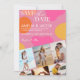 Este convite de Save The Date com colagem de fotos é perfeito para o anúncio do seu casamento divertido. Este convite apresenta uma colagem de 6 fotos e círculos coloridos e divertidos no verso.