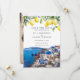 Este elegante convite de casamento save the date com limões aquarela e cena de Santorini Grécia pode ser personalizado com suas informações em tipografia elegante e toda a sua foto especial no verso. Projetado por Thisisnotme©