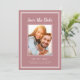 O design moderno e simples de moldura de foto para Save The Date apresenta sua foto de noivado favorita emoldurada por uma moldura branca nítida em um fundo rosa Dusty Rose moderno. Personalize e compartilhe os detalhes do seu noivado e casamento com seus convidados em letras brancas nítidas e manuscritas. O design é completado com uma moldura dupla moderna em branco. O verso do cartão é rosa sólido. (Para melhor posicionamento da sua foto, use uma ferramenta de edição de fotos para centralizar e cortar ANTES de carregar no site da Zazzle.) Este design de configuração de retrato (altura maior que largura) funciona lindamente com fotos aproximadas e fotos retangulares de corpo inteiro de você e seu noivo. Escolha sua favorita! Contate convitesuites@gmail.com para perguntas ou pedidos personalizados.