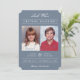 Mande o estilo moderno "foto da velha escola" salvar as datas, usando suas fotos de infância! A cor de fundo pode ser facilmente personalizada para qualquer cor que você quiser - tanto na parte frontal quanto na parte traseira. Mostrado: azul empoeirado. Design de listras brancas modernas nas costas.