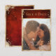 Um belo cartão de “Save the Date” de casamento com foto para todos os seus familiares e amigos para convidá-los graciosamente para a sua ocasião especial. O fundo rústico escarlate é um visual tão rico. Aparado em glitter dourado falso para definir o tom de elegância romântica e clássica. Salpicos de dourado terminam este lindo cartão de “Save the Date” de casamento. Lindos para qualquer estação.