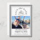 Este design apresenta uma borda prateada e branca armando todo o design. O centro de cima apresenta uma cruz com as letras "IHS" sobre ele, a imagem das folhas de palma logo abaixo. As palavras "Salvar a Data!" são exibidas como uma imagem de arco circundante. Sua foto é exibida como a imagem principal. Nomes de noiva e noivo aparecem logo abaixo. Cidade e estado são exibidos na parte inferior. O verso apresenta o verso Bíblia de sua escolha. Todo o texto está em uma bela fonte prateada, correspondente à borda. Projetado para coordenar com a coleção de suítes de casamento "Frame Católico de Bíblia Verso".