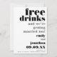 Um design tipográfico de diversão simplista para convidar seus convidados para salvar sua data de casamento, que é totalmente personalizável. O texto está alinhado à direita, com uma tipografia negra ousada no topo, Free Drinks seguido de E Nós estamos nos casando também nas cinzas, seus nomes, data do casamento e localização em uma mistura de preto e cinza. Um plano de fundo de cinza legal está na parte de trás do qual você pode mudar para uma cor diferente se desejar, por meio da opção Personalizar Mais.