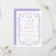 French Victorian wedding save the date featuring elegant purple lilac tones and vintage inspired detailing. Designed for classic, romantic, and antique style weddings with a refined European aesthetic. Perfect for formal ceremonies, garden weddings, and vintage themed celebrations, offering a timeless way to announce your wedding date while coordinating with a cohesive stationery suite.